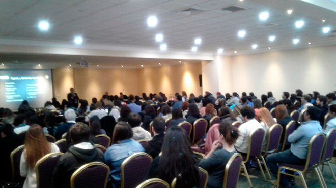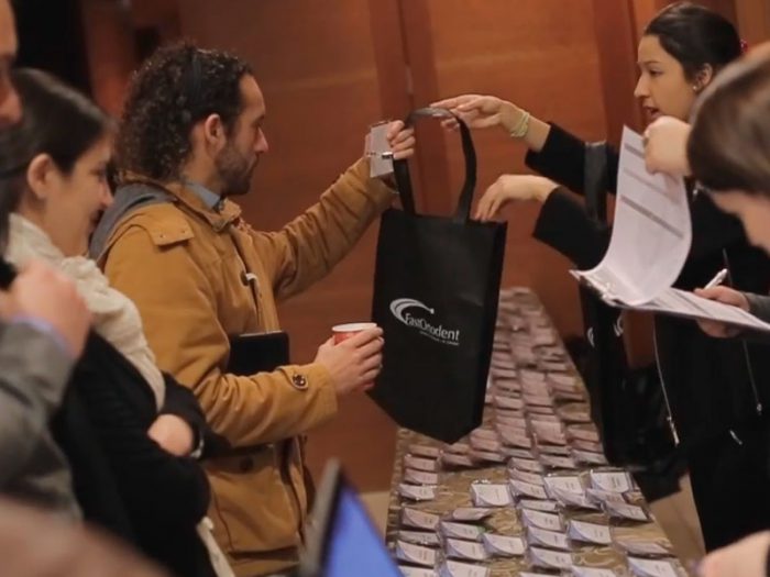 Durante el evento, recepción y acreditación de asistentes.